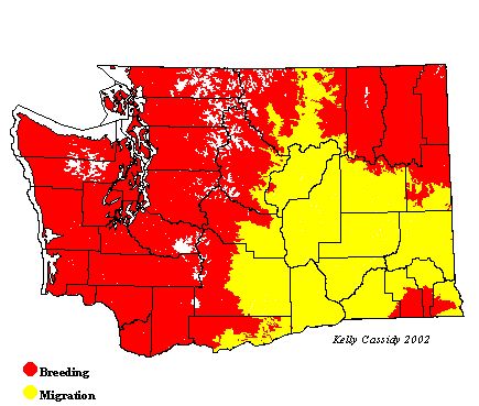 These medium-distance migrants arrive in Washington in late April or early May. Most birds leave in late July and early August; however, some stay into mid-September. They head to the lowlands of western and southern Mexico for the winter.