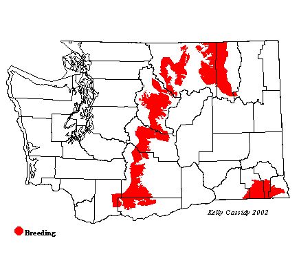 From April through September, Williamson's Sapsuckers are uncommon breeders east of the Cascade crest. They are to be found most commonly in the Okanogan and Methow Valleys at elevations of 3,000 feet and above, especially in larch forests. Stampede Pass and Colockum Pass (Kittitas County) are other good locations. They are fairly common in the Okanogan Highlands and the eastern side of the Blue Mountains.